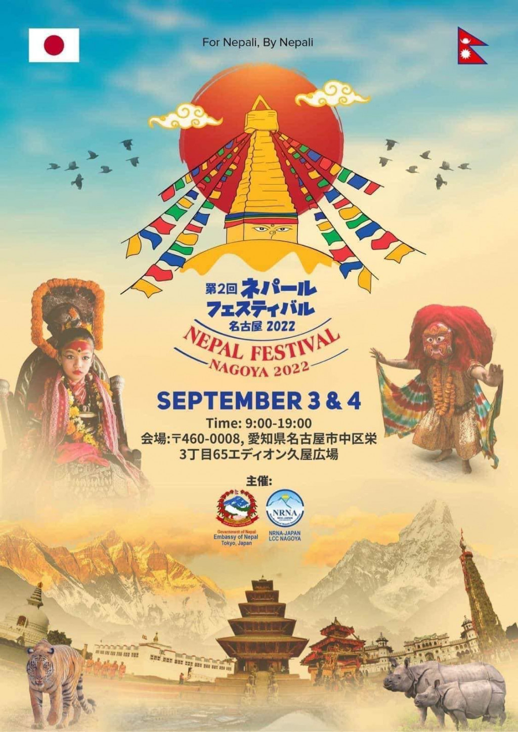 Nepal Festival will be held in Nagoya, Japan on September 3 and 4. At the event, Nepali food was also arranged to showcase the various art and culture of Nepal. The festival will be attended by Nepali and Japanese citizens in Japan. After the outbreak of COVID-19, the number of Japanese tourists visiting Nepal was lesser than compared before COVID. The organizers of the festival expect the festival to be important in spreading the message that Nepal is a safe destination. There are about 100,000 Nepalese in Japan.